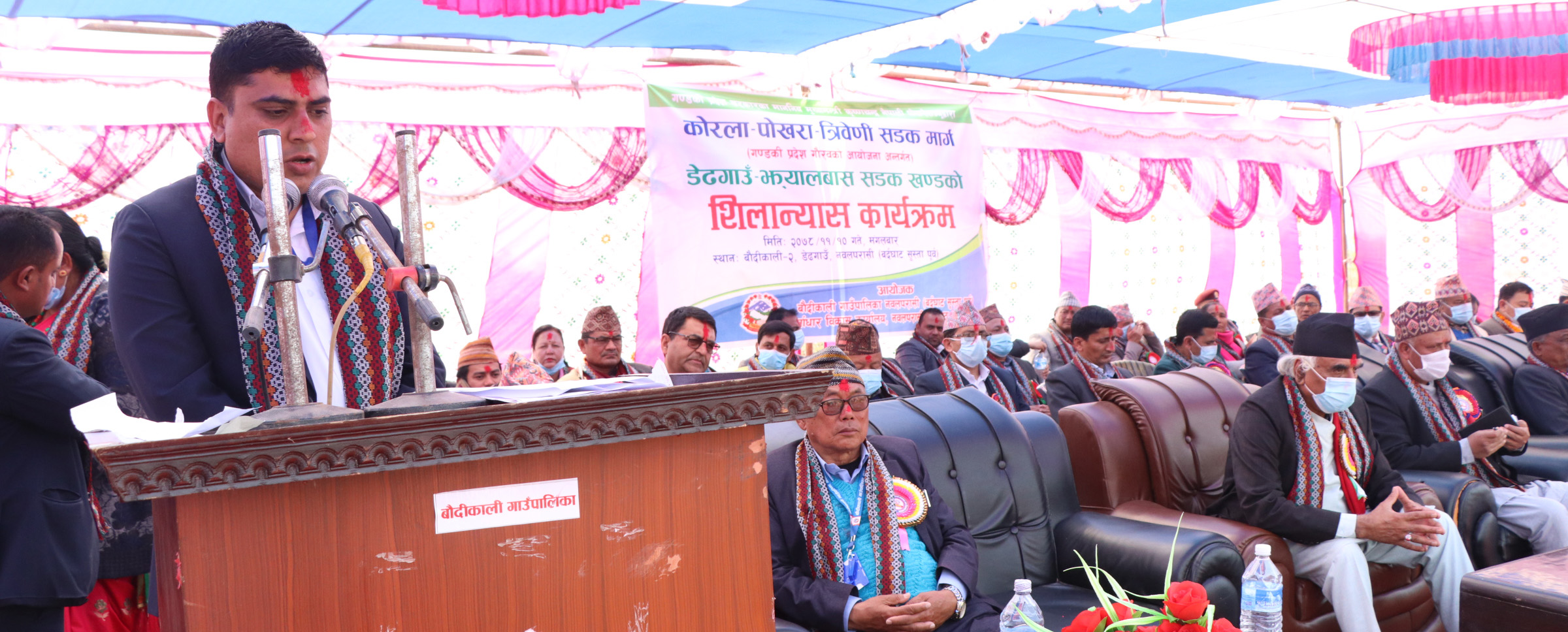 कार्यक्रममा भौतिक पूर्वाधार, सहरी विकास तथा यातायात व्यवस्था मन्त्री कुमार खड्काले मुख्यमन्त्रीको चाहना अनुसार नवलपुरको समग्र विकासका लागि सरकारले संवेदनशील भएर योजना अगाडि सारेको भनाइ थियो । प्रदेश गौरवको आयोजना कोरला त्रिवेणी सडकको डेढगाउँ झ्यालवास खण्डको काम सुरु गरेर सरकारले नागरिकको चाहाना पूरा गरेको भनाइ राखे । उनले भने, ‘बजेट विनियोजन भएर ठेक्का प्रक्रियामा गइसकेपछि हामी बाटोमा ढुंगा हाल्न आएका छौं, भाषण गरेर नागरिकलाई अलमलमा पार्न हामीले जानेका छैनौं ।’